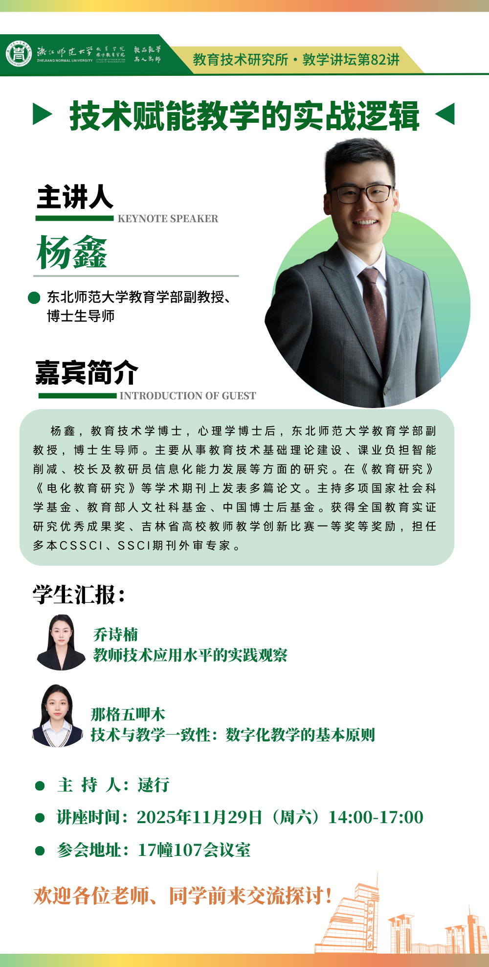 【讲座预告】杨鑫副教授主讲敦学讲坛第82讲:技术赋能教学的实战逻辑
