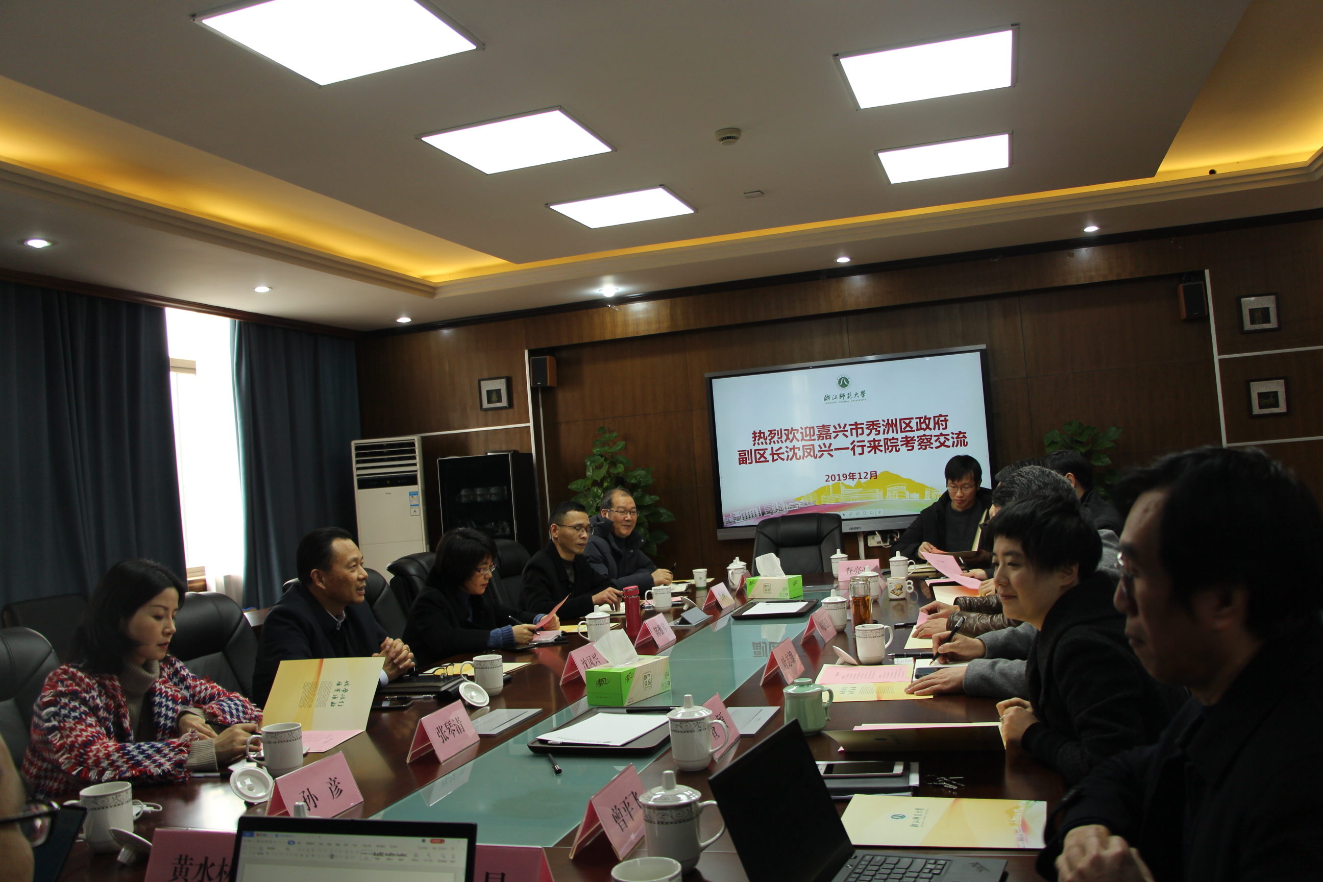 2019年12月30日上午,嘉兴市秀洲区副区长沈凤兴一行来我院洽谈合作办学总结与深化事宜,会议在17幢401会议室举行。秀洲代表团随行代表包括秀洲区教育体育局局长陈雅琴、高照街道办事处副主任张琴清、政府办信息科科长孙彦、教育体育局办公室主任李园兴、浙师大附属秀洲实验学校校长黄水林、浙师大附属高照实验学校校长林新事、浙师大合作办学办公室主任叶志雄,我院院长周跃良、党委书记查颖、副院长曹晓华、秀洲外派联系专家曾平飞、院长助理李云星、办公室主任查亮亮、社会服务中心副主任陈星出席洽谈会。