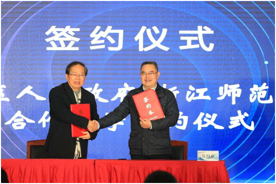 邵国平、王跃强分别代表浙江师范大学、江干区人民政府签署新一轮合作办学协议