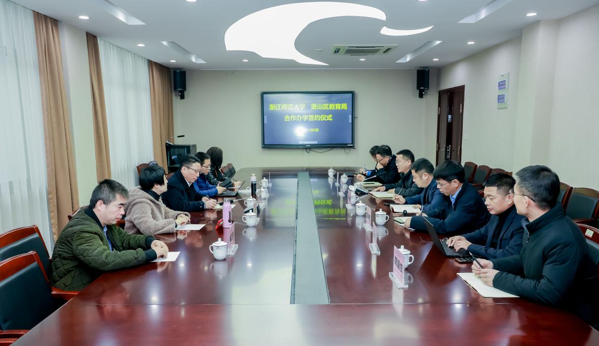 1月4日,浙江师范大学与杭州萧山区教育局第二轮合作办学协议在浙江师范大学附属金山小学签订。浙江师范大学直属学校与合作办学管理处处长叶志雄,教师教育学院党委书记、田家炳德育研究中心常务副主任查颖,教师教育学院院长助理李云星,萧山区教育局副局长吴金炉,城区教育指导中心主任倪柏根,浙江师范大学附属萧山二中校长沈朝晖、副校长胡建权,浙江师范大学附属金山小学校长徐明、副校长高神爱等出席签约仪式。签约仪式由萧山区教育局高中和义务教育科科长董柯锋主持。