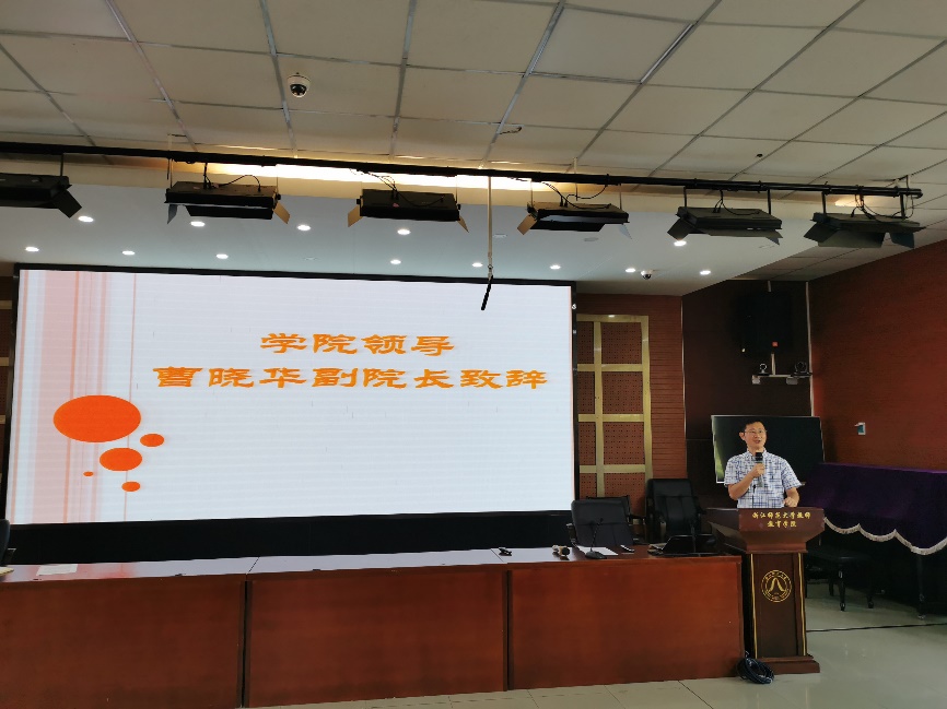 大会伊始,副院长曹晓华老师首先对“三习一训一考核”的全程见习制度表示了充分肯定,并明确了教学基本功是小学教师的立身之本这一要点。此外,曹老师还向同学们提出了关于教育见习的几点建议和要求。第一,他希望同学们能够正确认识教育见习对于获得实践性知识的重要性,珍惜每次见习的机会,并做好见习计划。第二,他强调:同学们需要遵守见习纪律,在高质量完成见习任务的同时也一定要注意人身和财产安全。致辞结尾,曹老师预祝同学们能够见习顺利,学有所成!