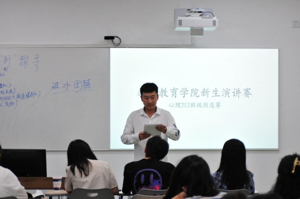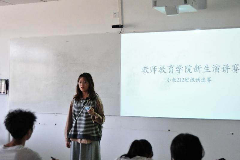 9月20日上午,教师教育学院2021级新生演讲赛班级预选赛于16幢教学楼顺利举行。此次演讲赛围绕“请党放心,强国有我”的主题展开,选手将进行三分钟备稿演讲,并由我院演讲队、辩论队和主持队队员担任评审,根据选手综合语言、内容、姿态等方面表现进行评分。