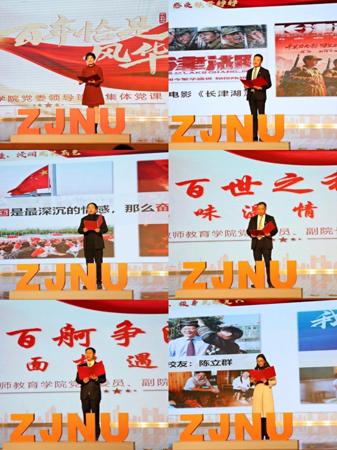 围绕“请党放心,强国有我”主题,学院党委领导班子成员接力述说着百年故事。由学院党委书记查颖老师开启,六位老师分别从 “百年征程”“百万雄师”“百炼千锤”“百世之利”“百舸争流”“百年圆梦”六个角度讲述从1921到2021的百年风雨兼程,歌颂党的光辉,激发师生爱国情怀。
