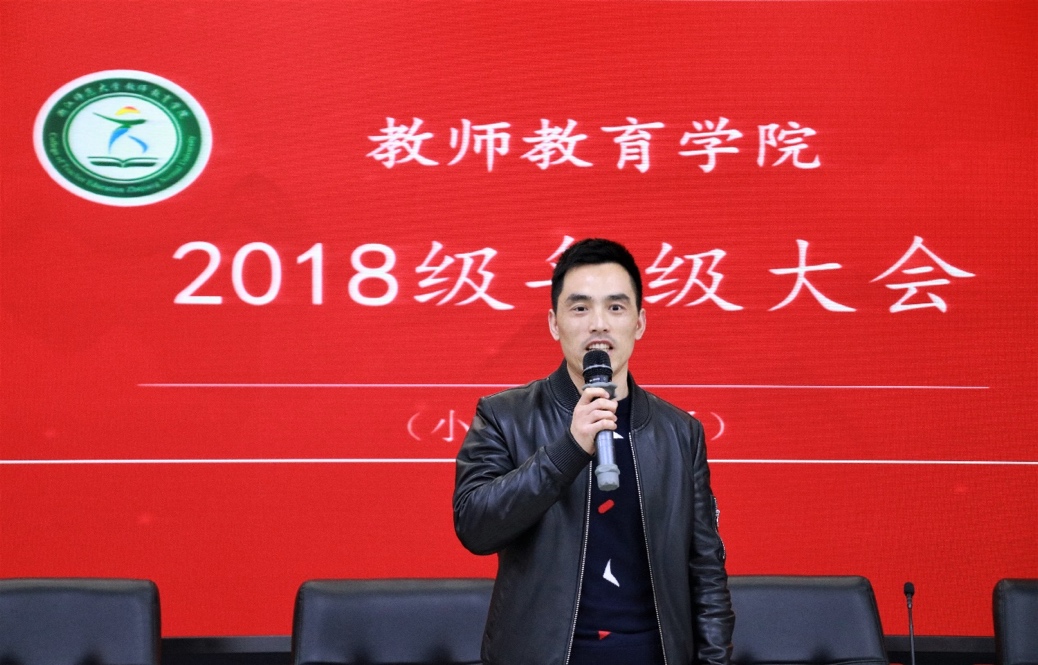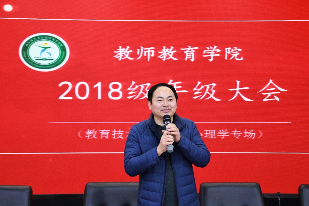 12月9日下午,教师教育学院2018级年级大会于17-112报告厅顺利开展。会议分小教专场、心理与教育技术专场两场,我院党委副书记狄伟锋老师、教务办闫伟老师,辅导员喻松老师、陈秋羽老师及全体2018级学生参与本次活动,由18级辅导员张文潇老师主持。