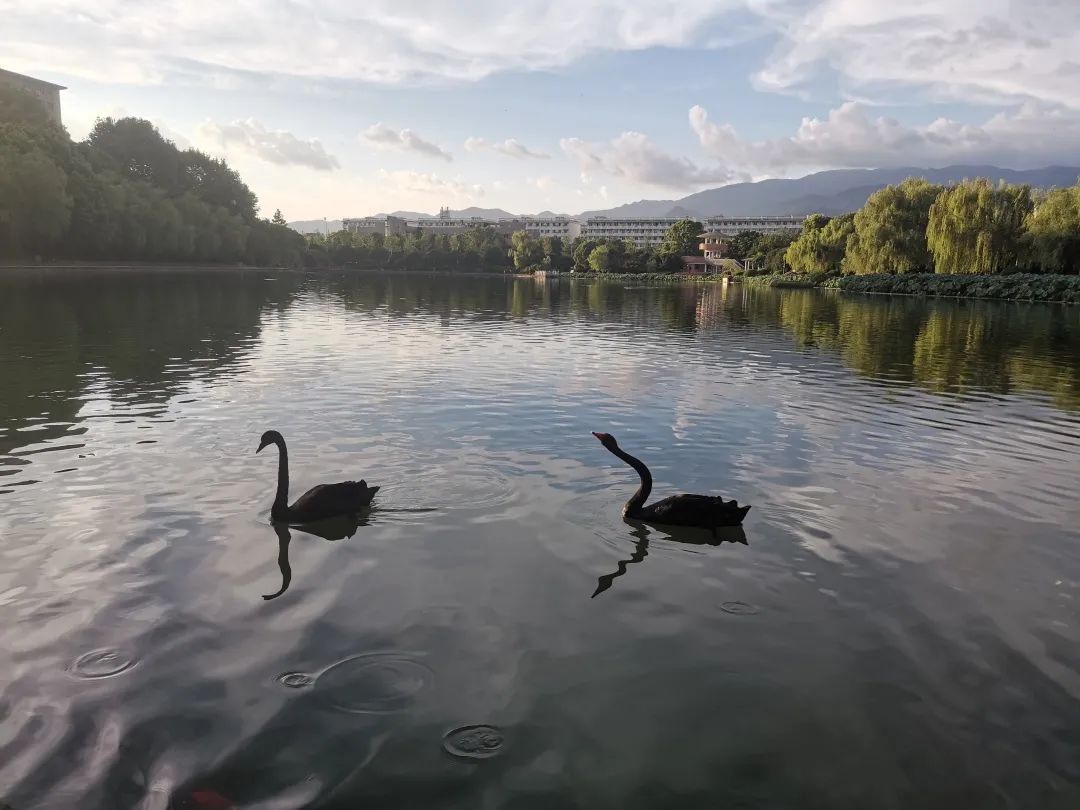 初阳湖里优雅的天鹅是不是也和我们一样惊叹于这美丽的日落呢