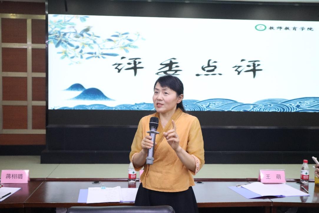 等待比赛结果时,黄良英老师对各位选手的表现进行了具体点评。黄老师首先充分肯定了选手们在朗诵方面的巨大进步,尤其是前后鼻音发音标准,情感表现到位。同时,她也根据自身的专业能力,指出了参赛选手在部分发音和音变、着装的合理搭配上存在不足,并提出了相应的改进建议。