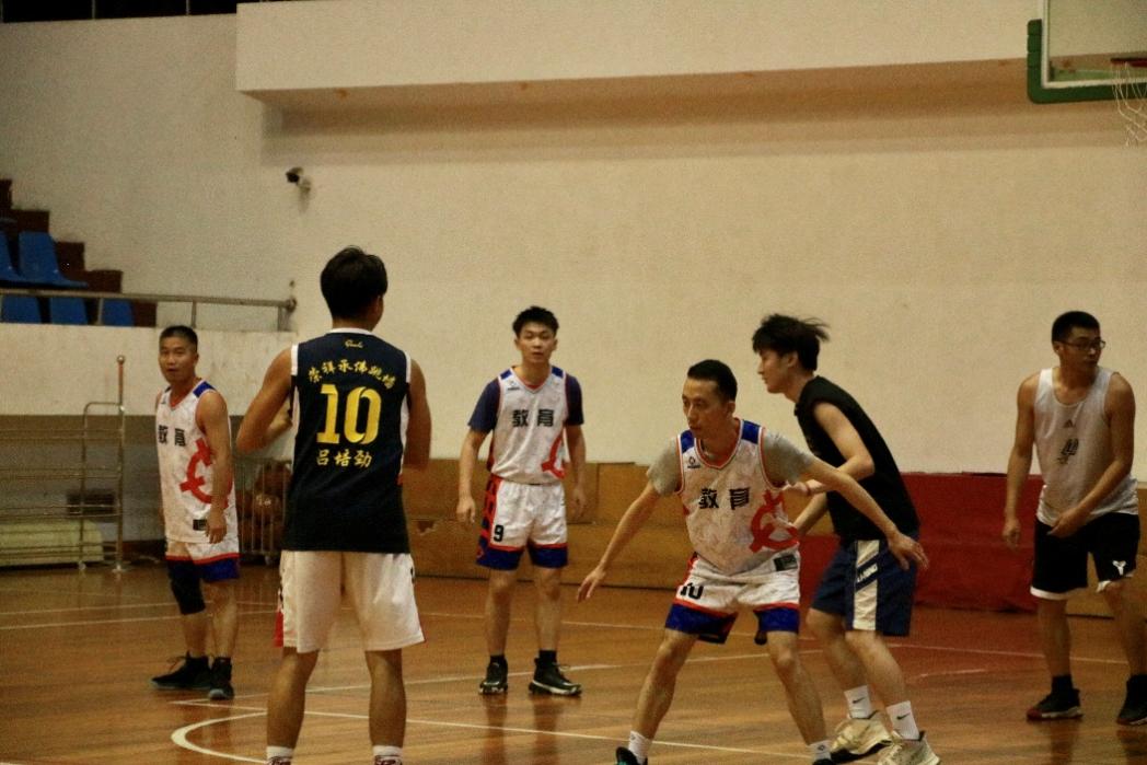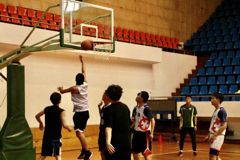 稍作休息后,双方都对队伍的阵容人员进行了调整,以更好的实力迎接接下来的比赛。接下来是扣人心弦的比分拉锯战。在前半场中,学生组重燃斗志,在不利的上场比赛前提下坚守战场,卯足了劲于篮球场上冲锋、跳跃、传球,分数差距一度有所缓和;但教师组也不甘示弱,场内队员默契配合、精准控场,场外队员加油打气、鼓掌喝彩。教师们矫健的身姿灵活地突破对方球员的防守,用利落的投篮姿势诠释了宝刀未老的风采。在一个个突破自我的环节中,学生和教师们都保持着最佳状态,用智慧和技巧呈现了令人拍手叫绝的篮球赛。最后,教师组仍然作为优势方结束了本场比赛。