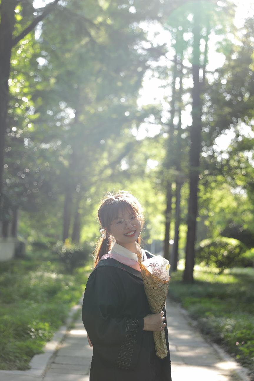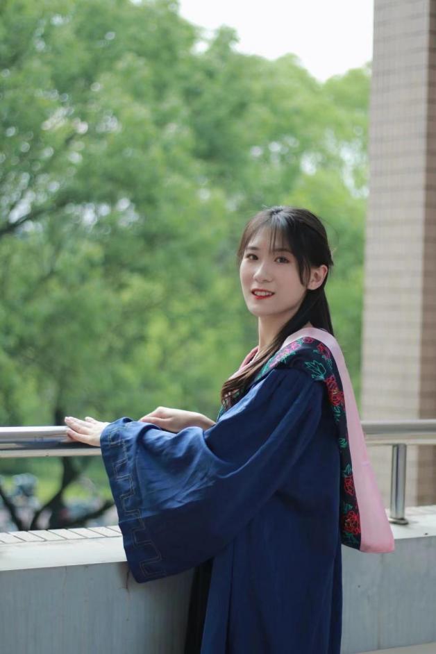 穿上藏青色的学士服,