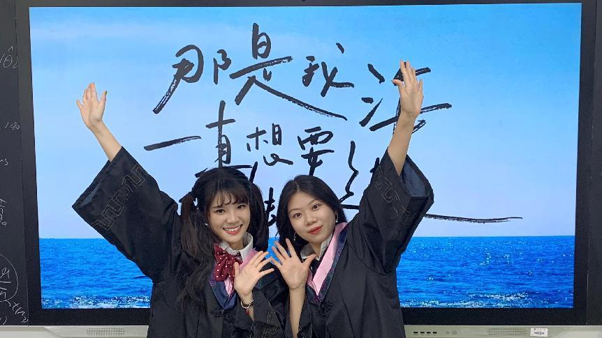 在镜头前笑着,和老师朋友们挥手作别啦!