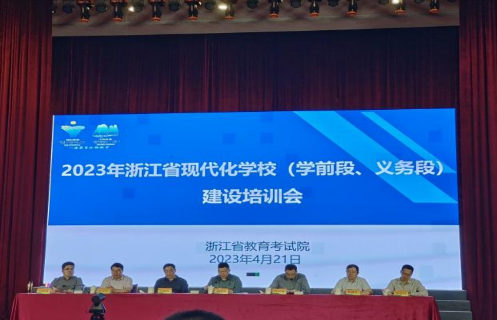 为进一步推进浙江省现代化学校(学前段、义务段)建设,4月20-21日,2023年浙江省现代化学校(学前段、义务段)建设培训会在浙江江山召开。省教育厅督导处二级调研员刘晓洪,省教育考试院党委委员、副院长冯成火,省教育考试院评估部主任张应敏,衢州市教育局党委委员、总督学程卫东,江山市人民政府副市长汪晓勤等领导出席,各地市申报创建2023年省现代化学校的校长、教师代表共200多人参会。