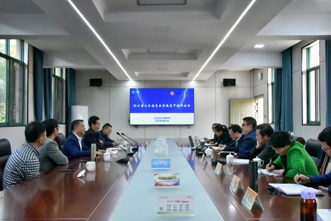 4月26日下午,由我校继续教育与合作办学管理处组织的浙江省山区海岛县调研组赴江山滨江高级中学开展普通高中专题调研。调研组由继续教育与合作办学管理处处长钱旭升带队,我院党委书记俞明祥和社会服务中心主任杨光伟,衢州市教育局党委委员、副局长曹晓华,龙游县教育局党委委员、副局长陈孝余,江山市教育局党委委员、副局长孙艳超参加调研,江山市教育局机关党委专职副书记周雁、江山市教师进修学校校长郑志江陪同调研。