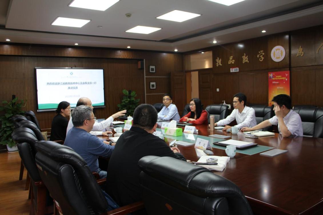 王会军主任以我校与浙江省教育技术中心共建数字教育大楼为契机,希望双方在教育数据治理、高质量教育资源建设、信息技术教学应用能力提升等方面建立合作关系,同时通过共同申报高等级课题、举办高等级学术会议与赛事等方式切实加强双方合作关系。