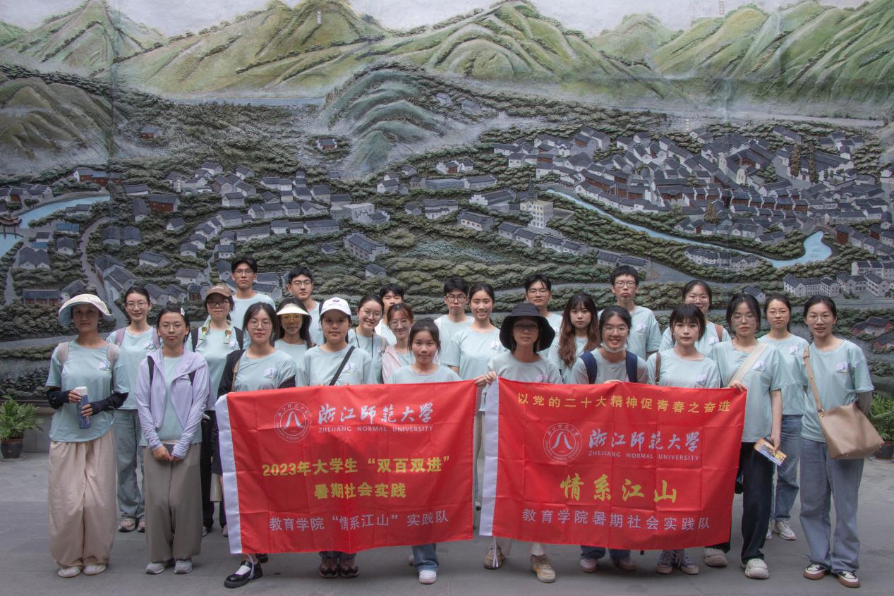 江山姿态,别有风韵。江山市位于浙闽赣三省交界处,是浙江省的西南部门户和钱塘江源头之一,亦是是浙江省老工业基地、首批20个工业强市建设试点县之一。7月4日,教育学院“情系江山”实践队怀揣着助力乡村教育、绘就共富蓝图的愿景,踏足于这片土地,践行自身作为教育学子的初心和理想,承起自己作为时代青年的担当和使命。