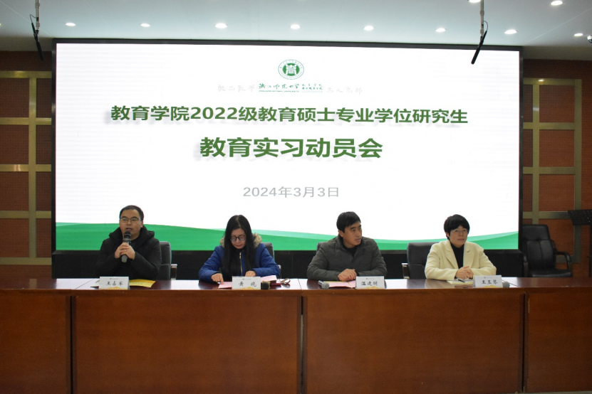 温建明指出,实习扮演着至关重要的角色,是教育硕士专业学位研究生培养的一项重要环节,不仅是理论知识与实践技能相结合的桥梁,更是锻炼自己、提高专业素养的重要途径。他强调,学校一直高度重视实习工作,制定了一系列管理制度,为实习工作的开展保驾护航。对于即将奔赴实习岗位的同学们,他提出了三点希望:一是要认识到实践教学的重要性,严格按照学校、学院制定的实习要求完成各项任务。二是要坚定信念,敬业奉献。坚持立德树人,以人格魅力引领学生的心灵,以学识造诣开启学生的智慧。三是要珍惜实习机会,努力提升自己。以“四有”好老师的标准严格要求自己,切实提升教师职业素养和教育实践能力。
