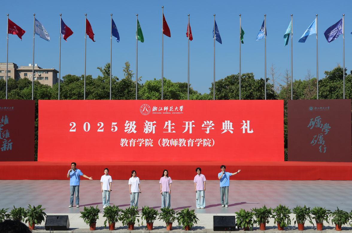 浙江师范大学副校长兼教育学院(教师教育学院)院长林一钢,学院党委书记苏煜,党委副书记王晓均,副院长王占军,学术副院长朱佳、石亚兵,学院党委委员、国际化办公室主任陈殿兵出席本次开学典礼,学院教师代表、各系主任、新生班主任、各科室老师和全体2025级新生参加典礼。