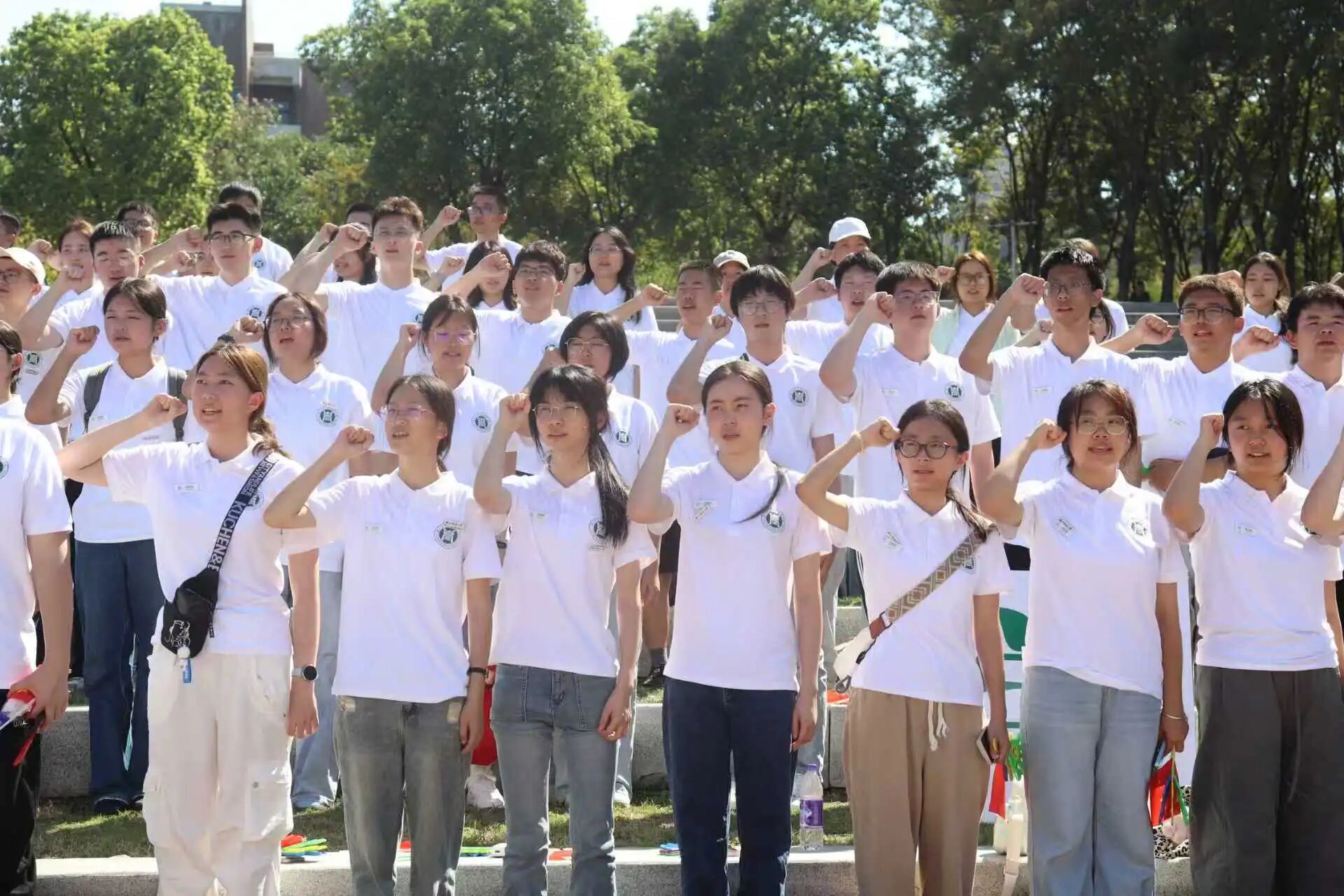 最后,在本科新生教技2501班徐亦朱同学的带领下,全体新生肃立宣誓,誓言传承教育家精神,为建设教育强国实现民族复兴挺膺担当。
