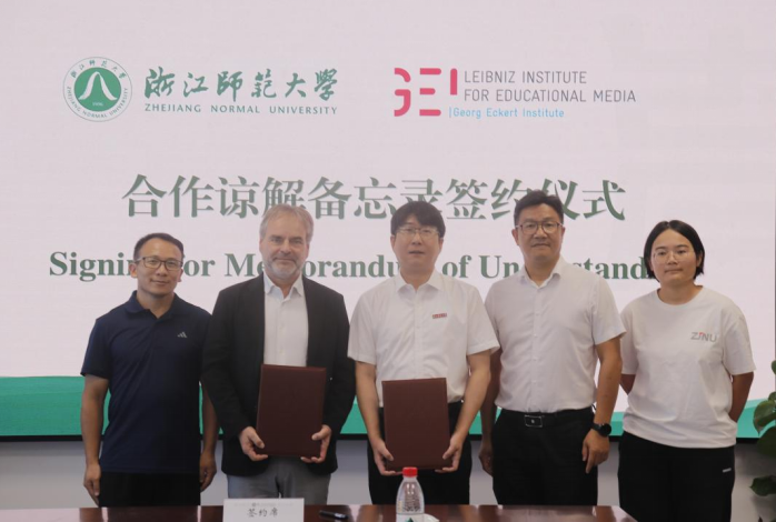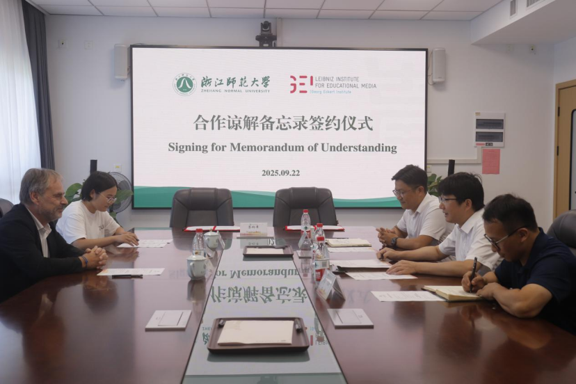 9月22日下午,德国莱布尼茨学会教育媒体研究所(乔治·埃克特研究所)(Leibniz Institute for Educational Media | Georg Eckert Institute)所长埃克哈特·福克斯(Eckhardt Fuchs)教授到访我院,与我院代表在32幢405会议室举行会谈。双方就合作事宜进行了深入交流,并共同签署了合作谅解备忘录。浙江师范大学副校长兼教育学院(教师教育学院)院长林一钢、党委书记苏煜、副教授付雷、国际化办公室秘书陈佳缘出席签约仪式。仪式由苏煜主持。