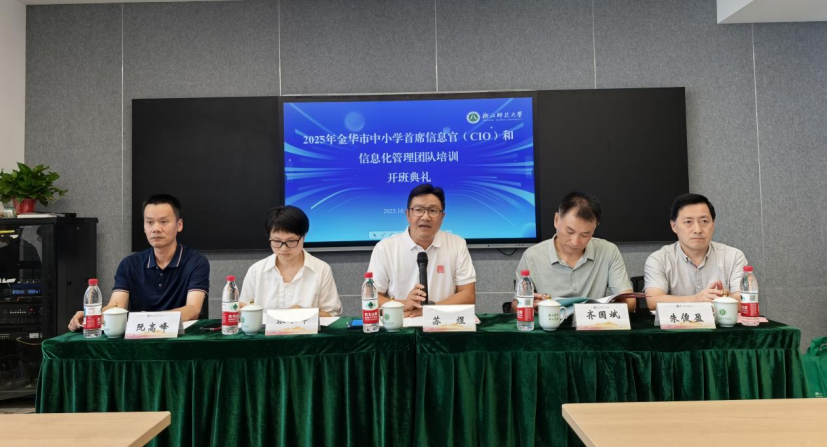 2025年10月15日下午,2025年金华市中小学首席信息官(CIO)及信息化管理团队培训开班典礼在浙江师范大学32幢309会议室隆重举行。本次培训由金华市教育信息与技术中心联合浙江师范大学教育学院(教师教育学院)、浙江省科普教育研究院共同举办,旨在提升全市中小学教育信息化管理水平,培养具备战略思维与实践能力的首席信息官队伍,加快推进教育数字化转型。