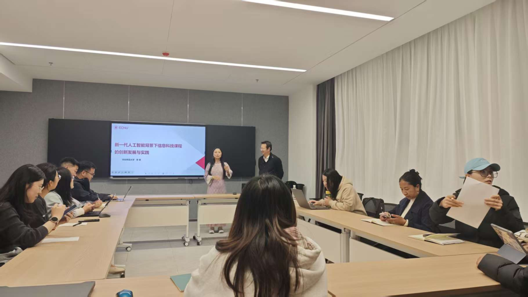 11月11日晚,华东师范大学教育信息技术学系教授、中国教育学会中小学信息技术教育专业委员会秘书长李锋应我院教育技术研究所邀请,在32幢309会议室开展了题为“新一代人工智能背景下信息科技课程的创新与发展”的专题分享。本次会议由教育学院(教师教育学院)胡启慧老师主持,教育技术学系主任王小明及教师代表蓝敏、管珏琪、逯行、李笑樱等共同参与交流。