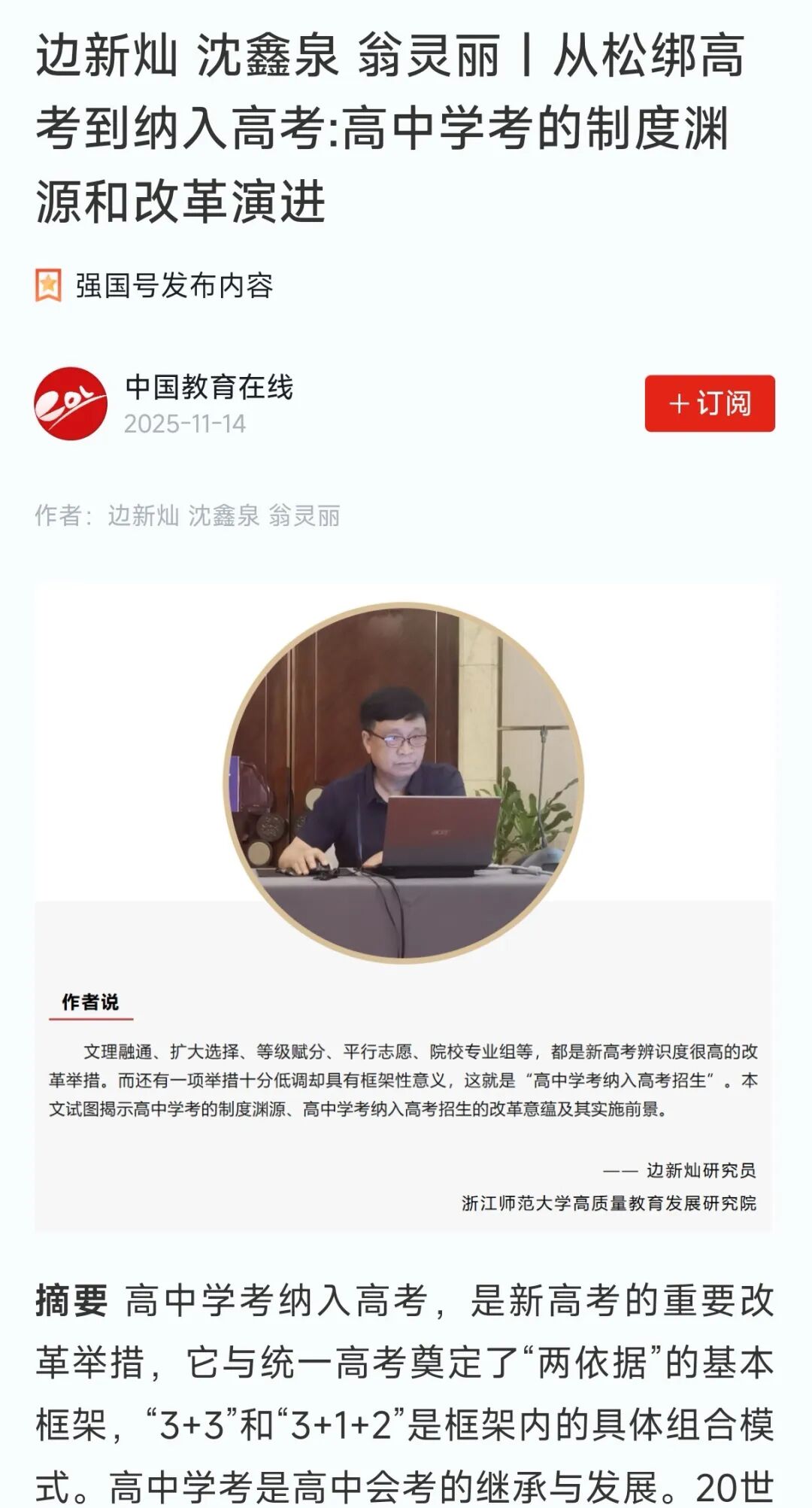 近日,浙江师范大学教育学院(教师教育学院)边新灿教授与博士生沈鑫泉等在CSSCI期刊《全球教育展望》上发表文章《从松绑高考到纳入高考:高中学考的制度渊源和改革演进》,《学习强国》平台转发了这篇文章。