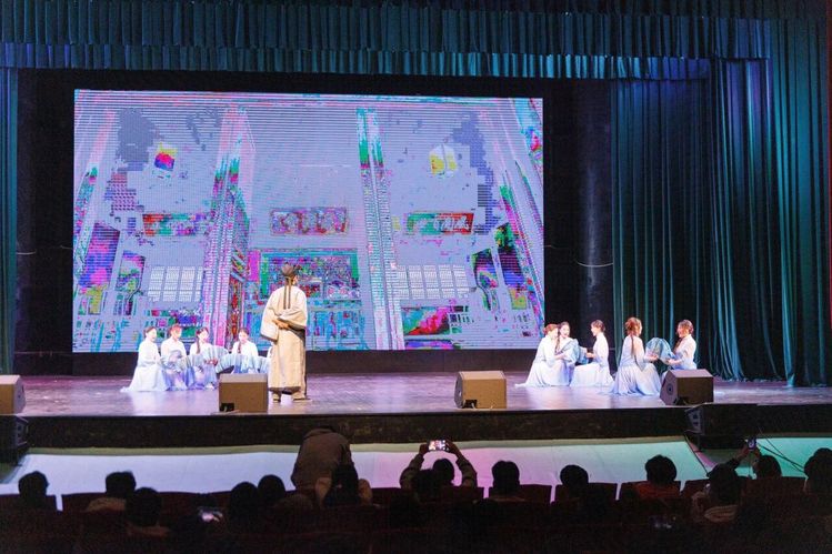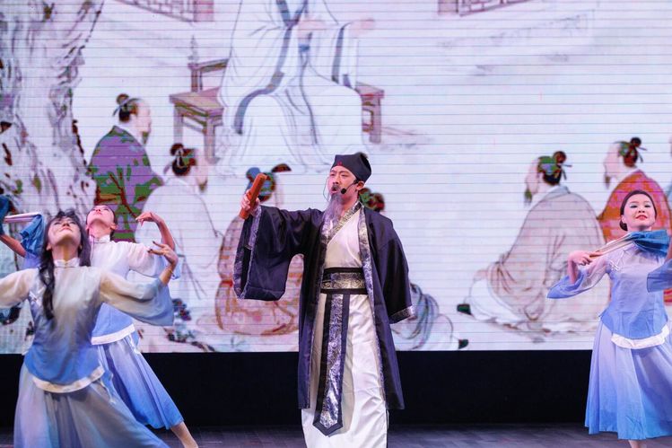 在“先生,一声称呼,却是一生的高度”的深情诵读中,舞台重现孔子杏坛讲学场景。“学而时习之,不亦说乎”的朗朗书声与师生共舞的画面交相辉映,生动传递出为师之道一脉相承的精神内核。