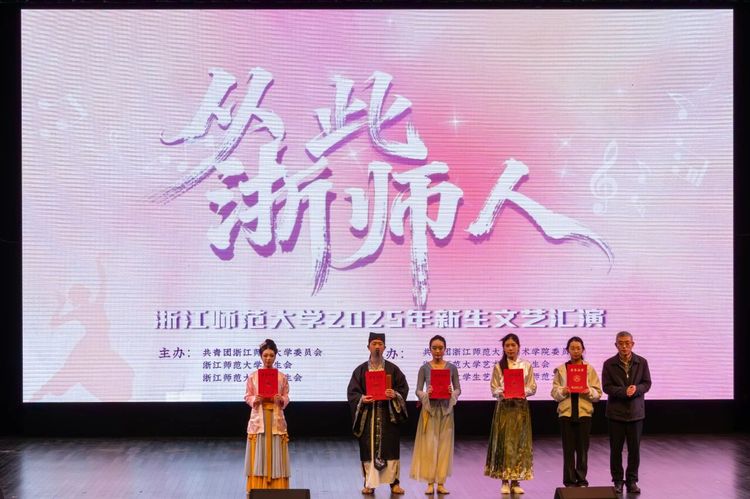12月7日晚,浙江师范大学2025年新生文艺汇演圆满落幕。教育学院(教师教育学院)选送的节目《薪火长鸣·追光行》凭借其深刻的教育内涵、精湛的艺术表达与昂扬的师生风貌,在全校各院系优秀作品中脱颖而出,荣获二等奖。