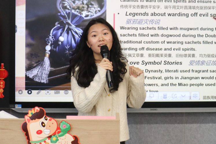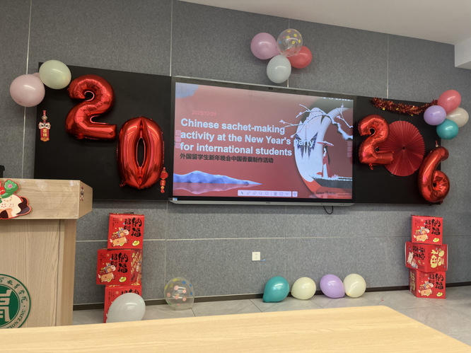 最是一年春好处,文化润心细无声。为弘扬中华优秀传统文化,联欢会特别设置了“中国香囊制作”体验环节。通过视频溯源,国际学生们深入了解了香囊的文化寓意。