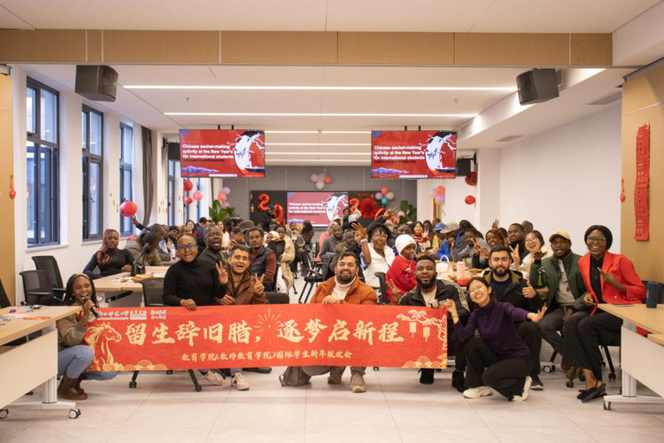 岁序更替,华章日新。12月28日,浙江师范大学32幢309教室内欢声雷动,暖意融融。教育学院(教师教育学院)国际学生新年联欢会温情启幕。来自五湖四海的国际学子欢聚一堂,以文会友,以乐传情,在浓郁的中国年味中辞旧迎新,共话未来。学院比较教育学硕士项目负责人徐倩、国际学生辅导员刘颖出席联欢会。