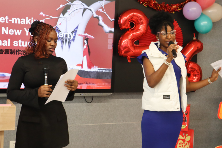 联欢会在马拉维籍比较教育学硕士研究生CHAGUNDA ULEMU ERNEST与纳米比亚籍比较教育学硕士研究生AMAKALI AINA TUUHEPELE的主持下精彩开场。国际学生辅导员刘颖致开场辞。