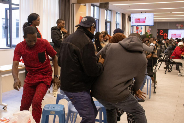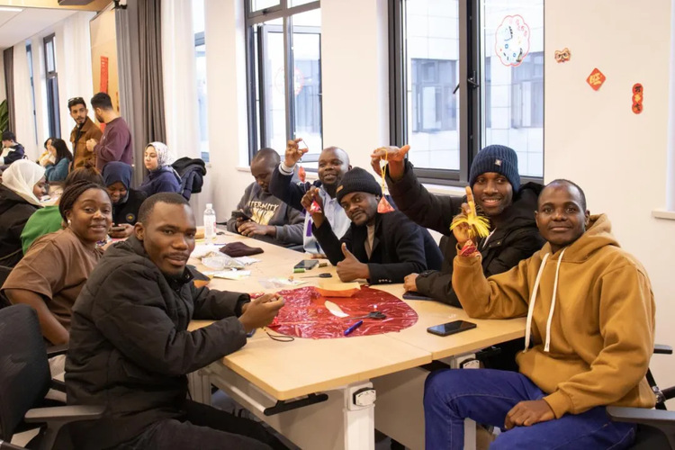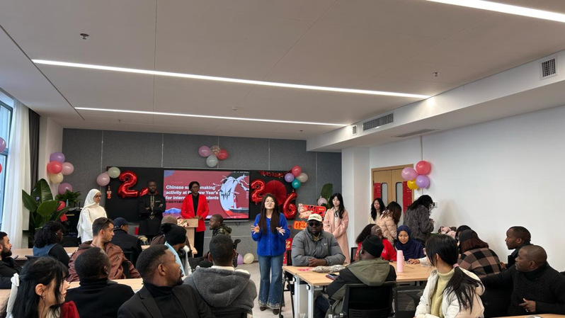 现场气氛热烈,高潮迭起。“抱团抢凳子”环节节奏紧凑,扣人心弦;“舞蹈接龙”中,各国同学即兴起舞,肢体语言化作通用的快乐密码;“生肖猜猜乐”脑洞大开,诙谐幽默,展现了十二生肖的独特魅力;“桌面冰壶碰碰”、“引球入洞”和“滚滚乐”前,选手们凝神静气,每一次精准投掷都伴随着雷鸣般的掌声。欢声笑语中,大家凭借积分兑换了心仪的年味礼品,收获了满满的幸福感与归属感。