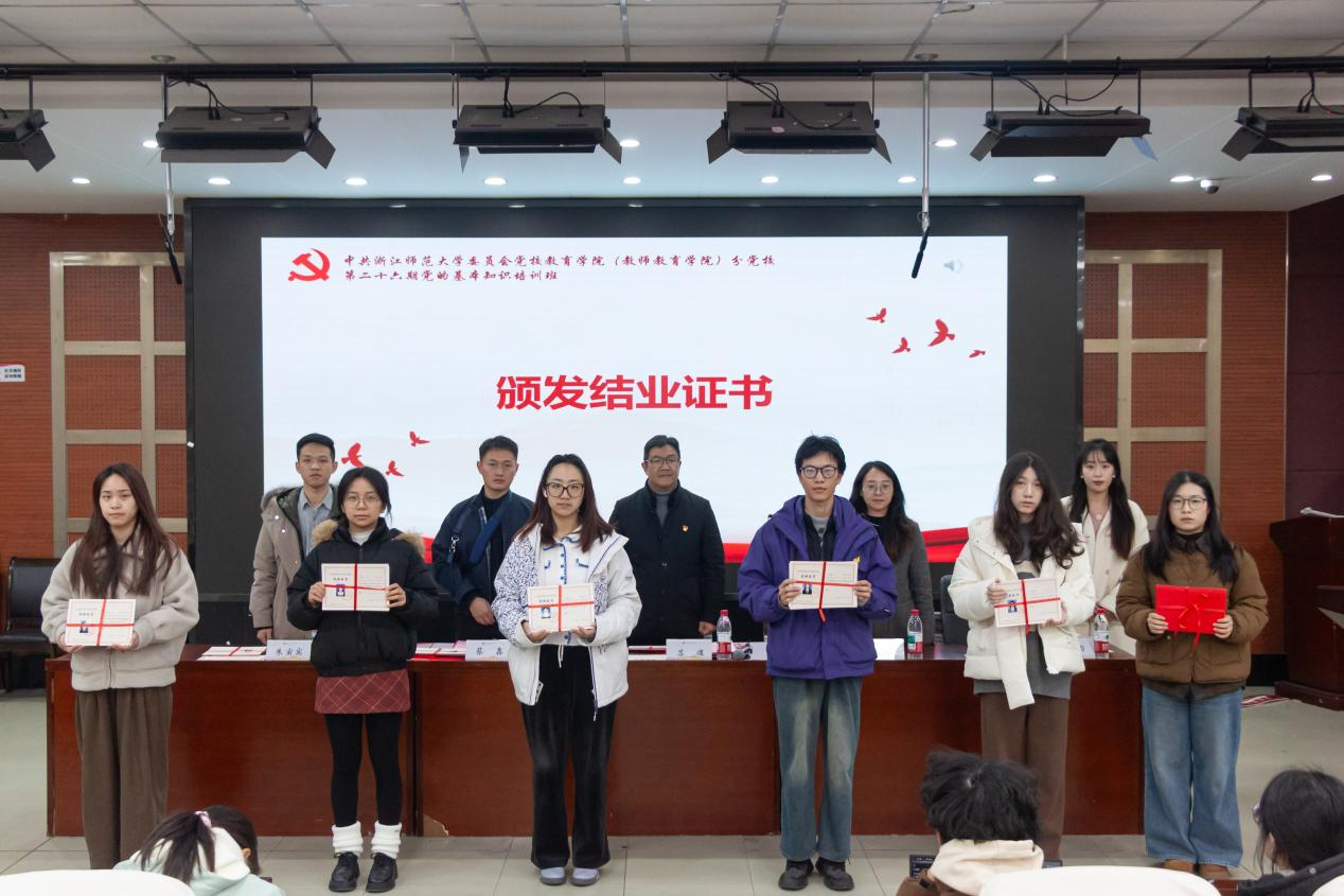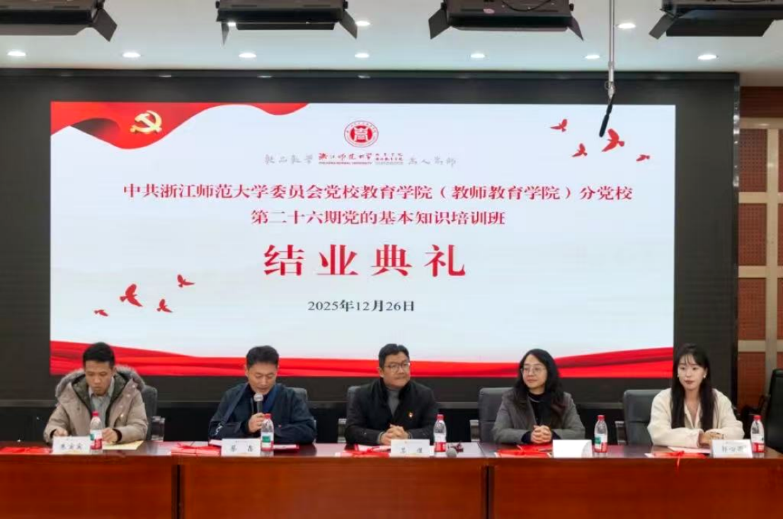 12月26日下午,中共浙江师范大学委员会党校教育学院(教师教育学院)分党校第二十六期党的基本知识培训班结业典礼暨初心故事汇顺利举行。教育学院(教师教育学院)党委书记、分党校校长苏煜,党委副书记、分党校副校长王晓均出席活动。分党校班主任郭心雨、朱寅宾及全体学员参加典礼。典礼由分党校教务长蔡鑫主持。