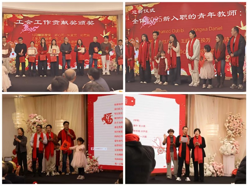 晚会隆重表彰了在2025年度工会工作及集体活动中表现突出的个人,颁发了“闪耀新星奖”、“全力以赴奖”,“工会工作热心人”,“旅行推荐官”,“年度健行奖”,“自我突破奖”等六大奖项,以此激励全院教师在各自岗位上发光发热。随后,15位2025年新入职的青年教师集体登台亮相,铮铮誓言象征着学院教育事业薪火相传、生生不息。