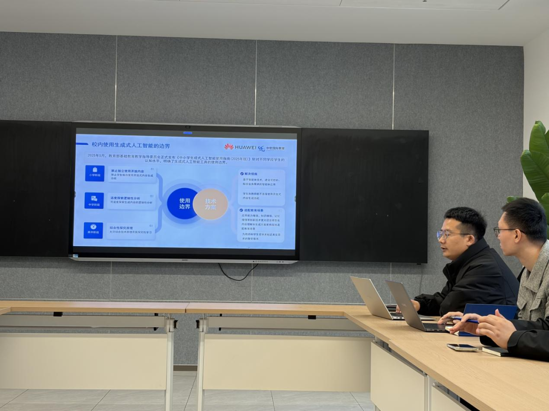 3月9日下午,应教育学院(教师教育学院)教育技术研究所邀请,北京中软国际教育科技股份有限公司(以下简称“中软国际教育”)业务经理刘智巍、王哲在32幢309会议室开展了“华为AI教育智能体中心方案”介绍会。薛松、昝辉等教师与会交流,会议由我院蓝敏主持。
