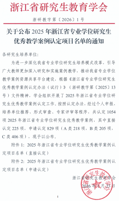 在2025年浙江省专业学位研究生优秀教学案例评选中,教育学院(教师教育学院)共有23项案例入选。其中,直接认定1项,申请认定22项(含A类4项、B类8项、C类10项)。这些案例聚焦教学一线,将前沿理念与实践创新深度融合,展现了学院在专业学位研究生培养模式改革方面的积极探索。