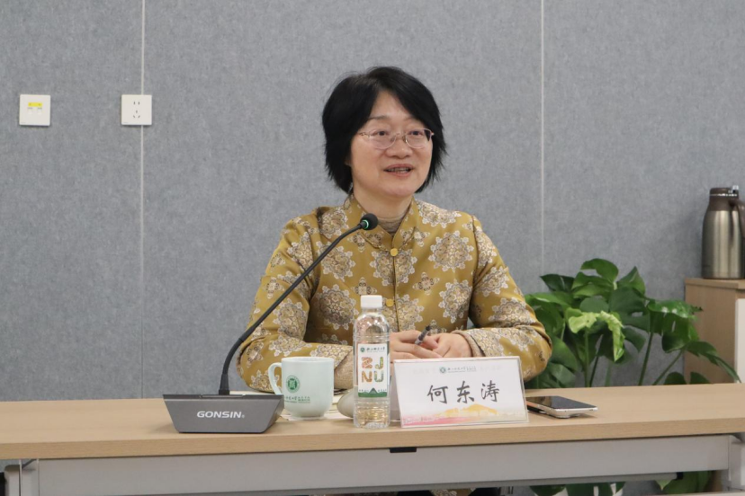 何东涛对教育学院(教师教育学院)在推动基础教育发展中取得的显著成效给予高度评价。在介绍省教研室工作时,她表示,在浙江省教育事业的发展进程中,省教研室始终坚持深耕细作,立足服务基层,持续用教研力量为一线教育赋能。她强调,浙江教研的突出优势在于省市县校四级教研机构体系完备,各级联动高效、对接精准。她希望依托浙江师范大学的理论研究优势与教研室的实践指导优势,双向发力、协同赋能,共同推动浙江省基础教育高质量发展。