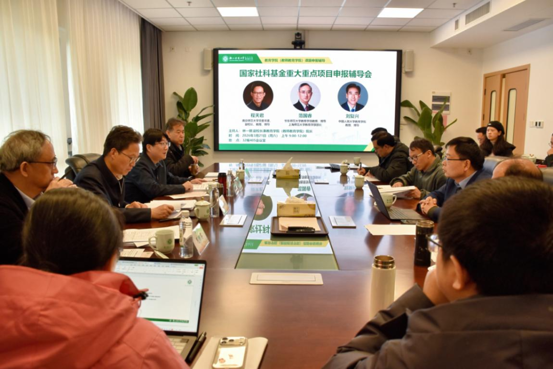 为扎实推进2026年度项目申报工作,提升重大、重点项目的申报质量,3月21日上午,浙江师范大学教育学院(教师教育学院)在32幢405会议室组织召开重大重点项目申报辅导会。会议特邀南京师范大学党委常委、副校长程天君教授,上海师范大学教育学部部长、华东师范大学范国睿教授,中国人民大学教育学院刘复兴教授等三位国内知名教育学者莅临指导。学院学术副院长石亚兵、拟申报2026年度项目的教师及青年教师代表参加会议。会议由浙江师范大学副校长兼教育学院(教师教育学院)院长林一钢主持。