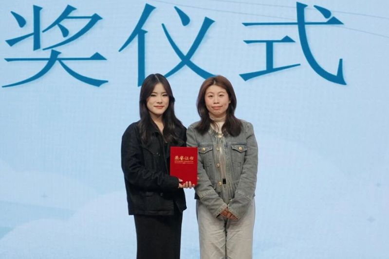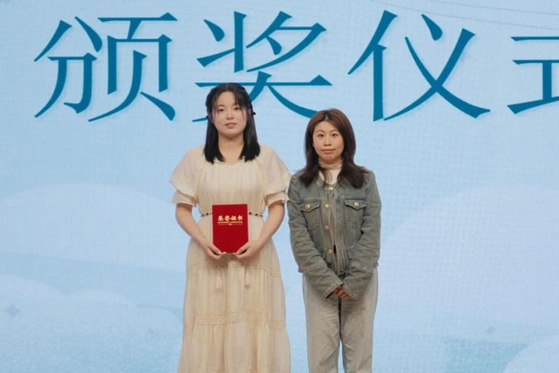 郭心雨为三等奖获得者沈谚承、姚哲宇、唐心怡、陈奕颁奖