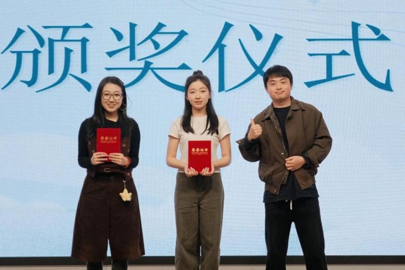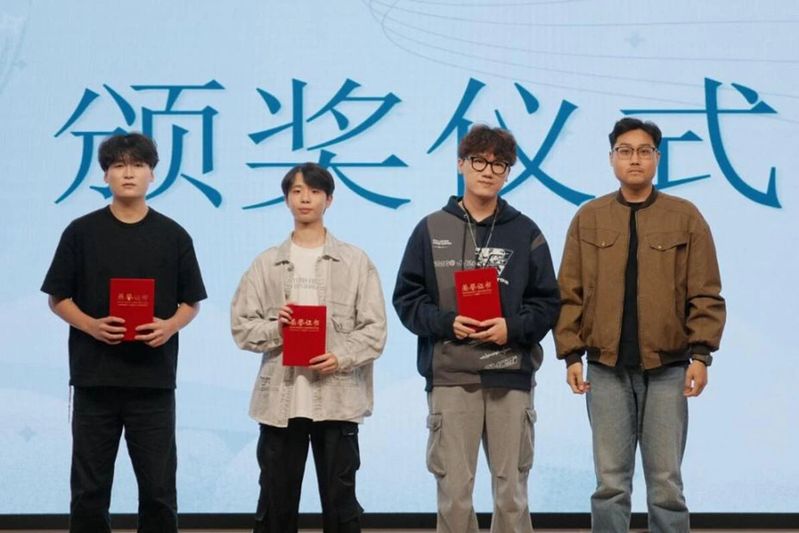 胥松澔为二等奖获得者林以诺、徐崇腾、陈田宇颁奖