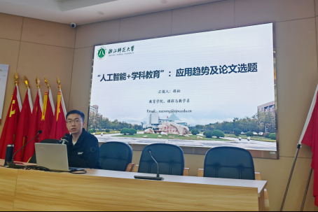 4月16日,合作办学外派联系专家韦正航特邀浙江师范大学教育学院(教师教育学院)课程与教学系薛松博士,赴浙江师范大学附属萧山二中开展教研指导,作题为“人工智能+学科教育:应用趋势及论文选题”专题讲座,为教师教学研究与论文写作提供前沿学术指引。