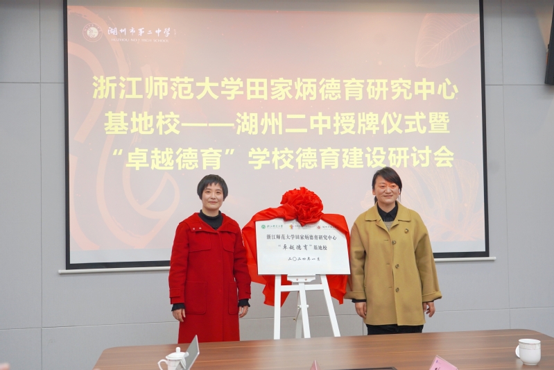 2024年1月2日至1月3日,浙江师范大学田家炳德育研究中心(以下简称“中心”)在嘉善县实验小学、湖州市第二中学(以下简称“湖州二中”)隆重举行基地校授牌仪式及各学校对应德育建设专题研讨会。