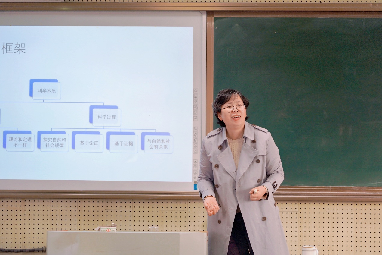 谢群以“从课标到课堂:科学核心素养与应试能力的双赢之道”为题开展讲座。她指出,新课标以培育学生科学核心素养为核心目标,需重点聚焦四大维度:科学观念的建构、科学思维的发展、探究实践能力的提升与科学态度责任的培育,这四大维度共同构成科学学科育人的核心框架。为让理念落地,她结合中考试题经典案例深入剖析,清晰阐明当下科学命题已从“知识记忆型”向“素养导向型”转向——命题更注重情境化设计,强调考查学生运用多学科知识解决真实问题的能力,呼应了新课标对核心素养的培养要求。谢群还针对教学实践提出具体优化建议:一是将科学思维贯穿教学全过程,在知识讲授、实验设计、问题解决等环节,有意识引导学生运用归纳、演绎、推理等思维方法,而非单纯传授结论;二是在课堂中增加学生论证与表达的机会,通过小组讨论、观点辩论、实验报告展示等形式,让学生在表达与思辨中深化对知识的理解,实现核心素养提升与应试能力增强的“双赢”。