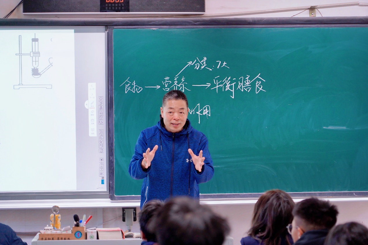 在科学学科教研指导活动中,朱红认为何国强主讲的《食物与营养》一课,以学生日常生活中“一份午餐”为真实情境切入点,紧扣科学学科“源于生活、用于生活”的特质,以问题链为驱动搭建学习框架:从“午餐包含哪些食物”逐步深入至“食物中含有哪七大营养素”,再引导学生探讨各类营养素在人体生长发育中的具体作用,最终自然引出“均衡膳食”的健康理念,实现知识与生活价值的深度联结。课程进一步拓展探究维度,聚焦“不同食物所含能量差异”的核心问题,通过对教材原有实验的改进——如优化实验装置、细化观察指标,既解决传统实验操作繁琐、现象不明显的问题,更激发学生的创新思维与动手实践能力。课堂收尾阶段,何老师精准提炼出“物质观、能量观与生命观”三大科学观念,将零散知识升华为系统的认知体系,在潜移默化中助力学生建构科学观念,推动核心素养全面发展。