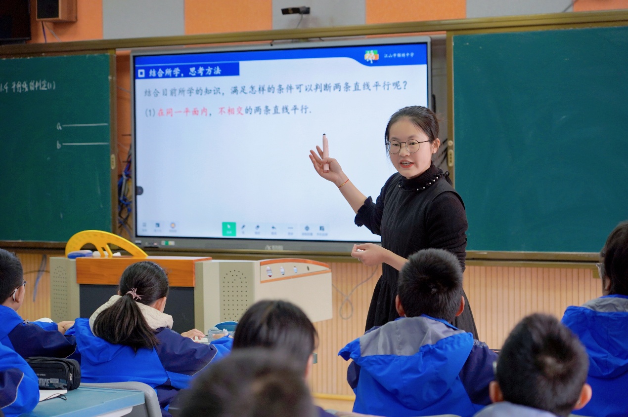 锦绣中学陈夏荷老师表示本节课紧扣平行线判定定理这一教学重点展开设计,课前围绕课题的有效导入进行了充分准备。课堂开篇,借助PPT回顾知识,引导学生类比垂直的概念,理解角的数量关系与直线位置关系的内在逻辑,为学习新知识做好铺垫。在组织学生动手操作画平行线并观察同位角不变性的过程中,直观引出平行线判定定理。着重强调几何证明的完整性与书写规范性,着力培养学生严谨的逻辑推理能力,并通过典型例题与分层练习巩固所学,课后及时对知识要点进行梳理总结。