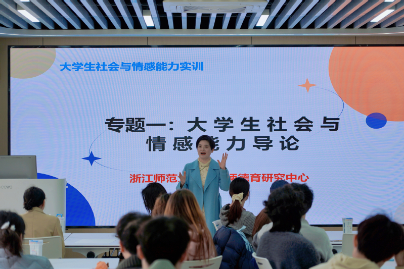 为积极回应大学生全面健康成长的现实需求,浙江师范大学田家炳德育研究中心(以下简称“中心”)面向全校本科生,创新开设《大学生社会与情感能力实训》公共通识课。课程以“理论筑基、实训赋能”的趣味模式,系统培育学生任务执行、团队协作、情绪调节等核心能力,为大学生成长成才筑牢社会与情感“软实力”根基。