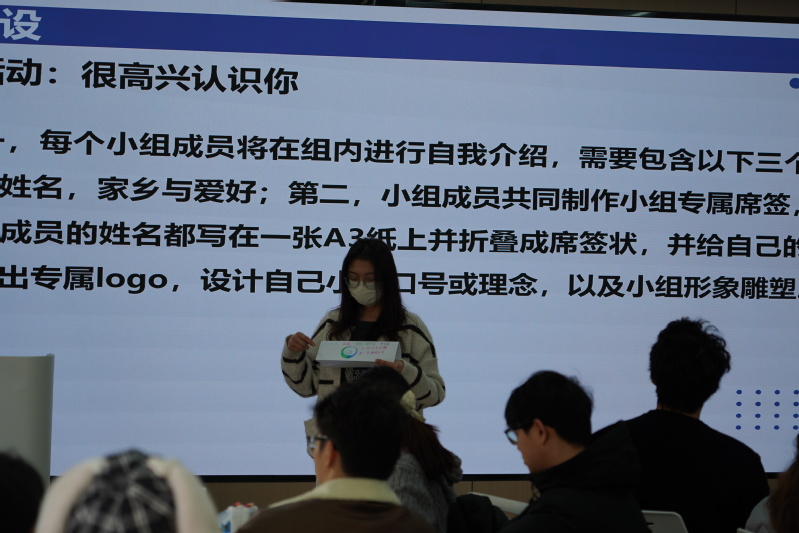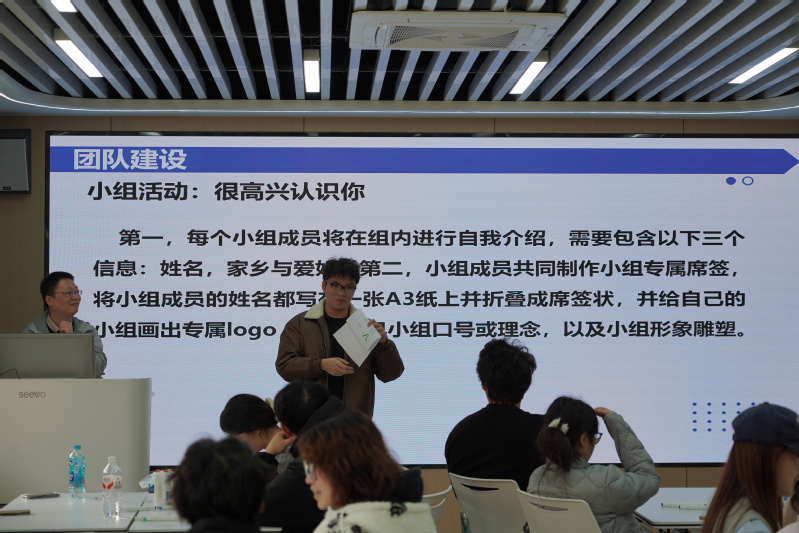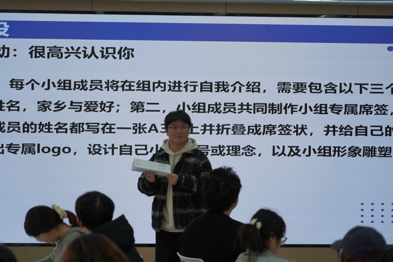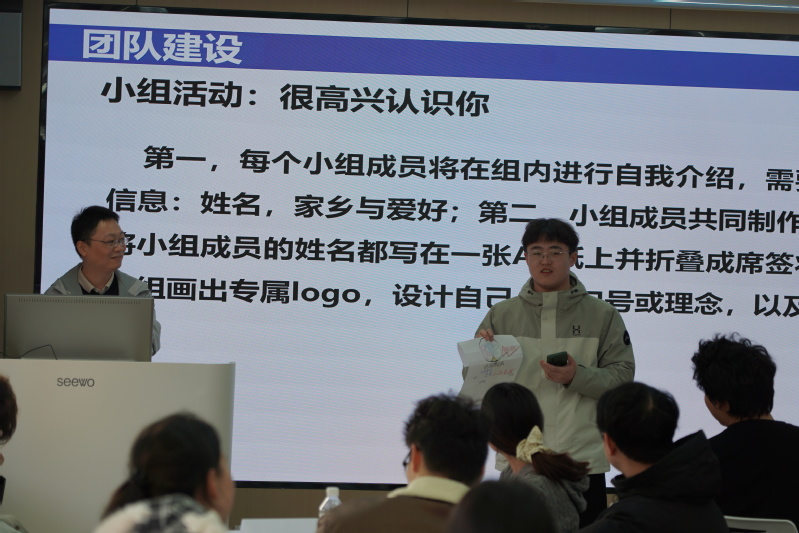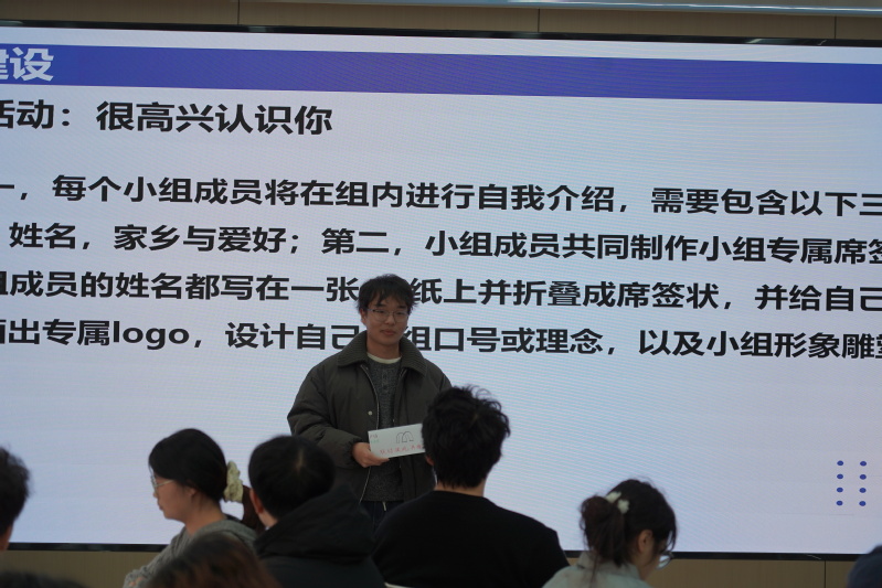 随后,授课教师彭年强围绕课程具体实施流程、教学安排及考核标准,为学生作了清晰细致的讲解,让大家对课程学习有了明确的方向。为快速拉近师生、生生间的距离,课堂上开展了“很高兴认识你”团队破冰游戏,在轻松愉悦的互动中,6个课程合作小组顺利组建。紧接着,“测测我的能力值”环节有序开展,引导学生科学认知自身社会与情感能力的发展现状,坦然直面自身短板、明确提升方向。