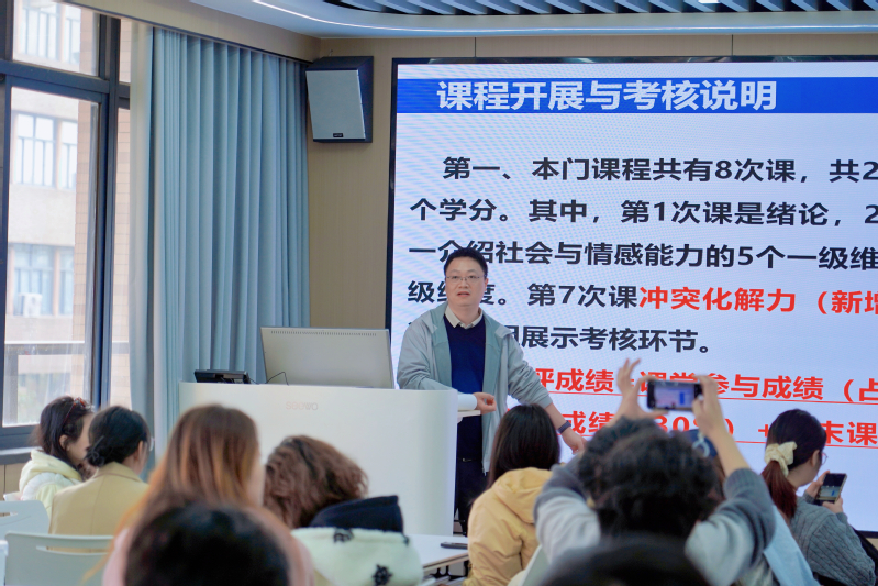 授课教师蔡群青博士则从教育领域的“情感转向”、青少年心理健康发展的现实挑战、国内素质教育相关政策要求三个维度,系统阐释了开展社会与情感能力教育教学的重要性与必要性。他还结合OECD(经济合作与发展组织)开展的两轮国际社会与情感能力测评情况,深入浅出地讲解了大学生社会与情感能力培养的前沿研究成果,分享了国内外相关教育实践案例,为学生搭建起理论与实践之间的桥梁。