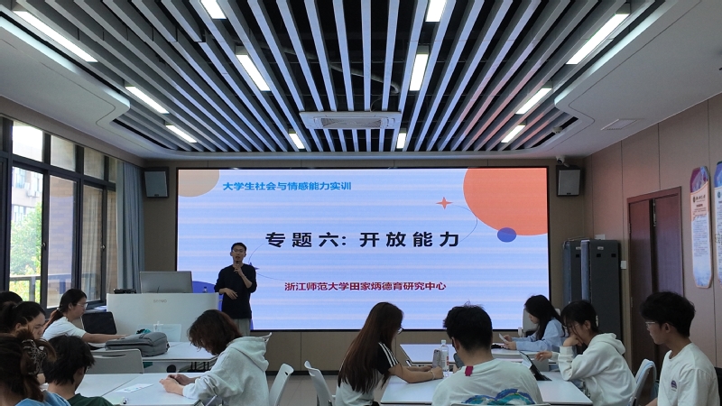 4月10日下午,浙江师范大学田家炳德育研究中心(以下简称“中心”)蔡群青博士,为同学们带来一场生动有趣的开放能力专题实训课。课堂打破传统说教模式,融理论、案例、游戏、实践于一体,让同学们在轻松互动中读懂开放、学会开放、提升开放。